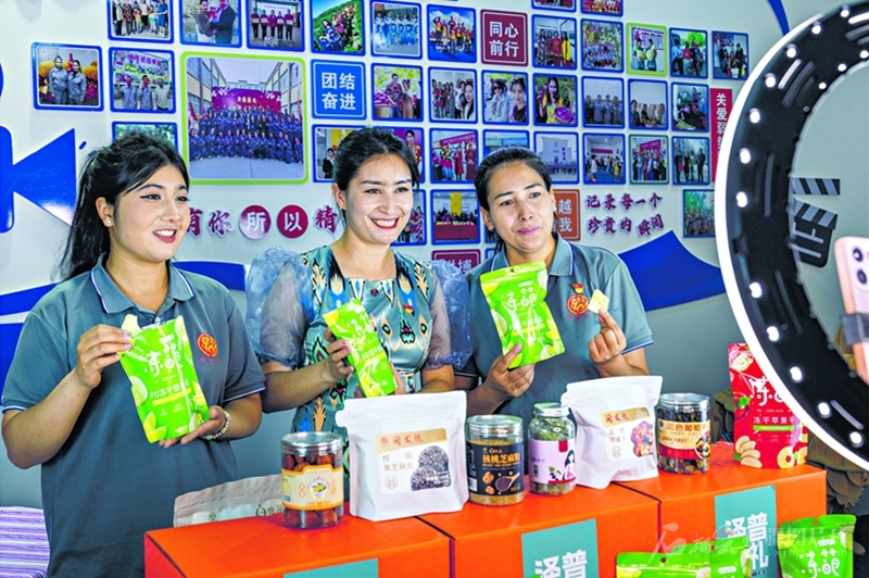 7月7日,泽普县党员干部在援疆企业新疆闽龙达干果产业有限公司通过直播销售冻干留香瓜。连日来,该县组织党员干部深入企业,开展“直播销售”等系列助农活动,助力乡村振兴。 □张昀摄