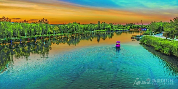 7月27日傍晚,克拉玛依市九龙潭景区,游客乘船畅游克拉玛依河。连日高温,一到傍晚,市民和游客进公园,逛景区,观景纳凉,体验戏水乐趣。 □田国建摄