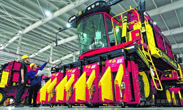 7月29日,新疆钵施然智能农机股份有限公司工人在有序作业。该公司是新疆棉花产业链最大的装备制造企业,目前已实现自制件供应达90%以上,自动化生产程度达75%以上。 □石榴云/新疆日报记者韩亮摄