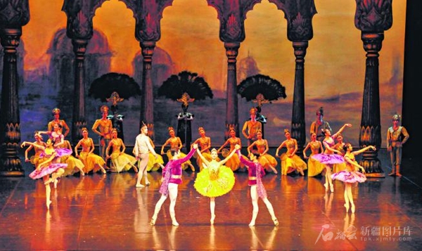 琥珀色的灯光布满舞台,庄严的神庙若隐若现,身姿优雅、面容清丽的舞姬妮基娅身着白裙登场,她的美被大祭司觊觎,而她和武士索罗尔的爱情将不可避免地遭遇磨难……当晚,中央芭蕾舞团带着芭蕾舞剧《舞姬》亮相第七届中国新疆国际民族舞蹈节。