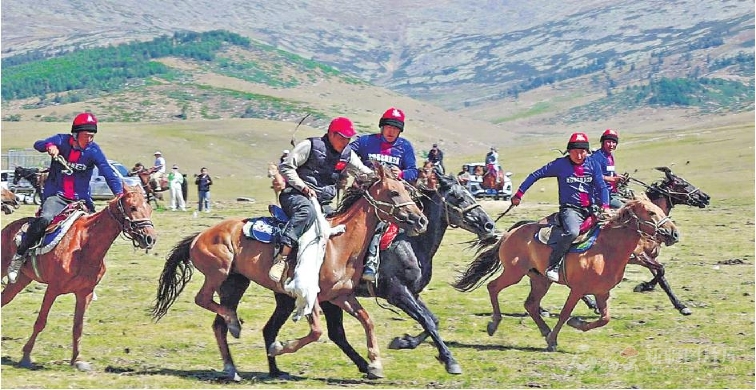 7月26日,骑手在参加刁羊比赛。当日,阿勒泰市红墩镇在乌希里克夏牧场举办“草原欢歌·激情竞技”主题活动,在丰富当地牧民精神文化生活的同时,让游客体验独特的民俗风情。□宋湖拉·沙布尔江摄