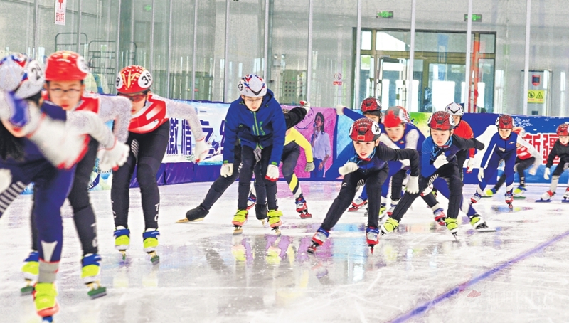 7月27日,自治区短道速滑夏令营学员在福海县冰上运动中心滑冰。此次夏令营激发了众多青少年参与冰雪运动的热情,并将从中选拔一批优秀冰雪运动后备人才。□阿尔达克·拜斯汗摄
