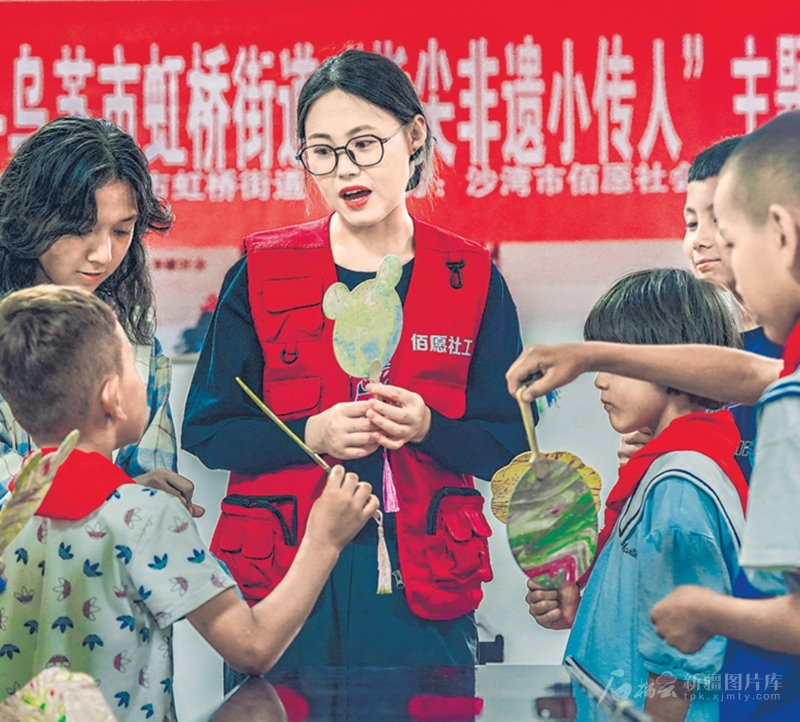 7月29日,乌苏市虹桥街道解放路社区工作人员为学生讲解扇艺文化。暑假期间,该街道开展“指尖非遗小传人”主题活动,让学生们在动手实践中感受非物质文化遗产的独特魅力。□李仁锡摄