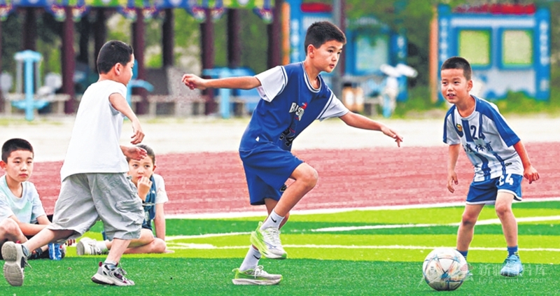 7月28日,学生在巴里坤哈萨克自治县健身广场足球场练习足球。暑假期间,巴里坤很多中小学生来这里参加足球技巧训练,乐享足球运动魅力。□钟卫亮摄