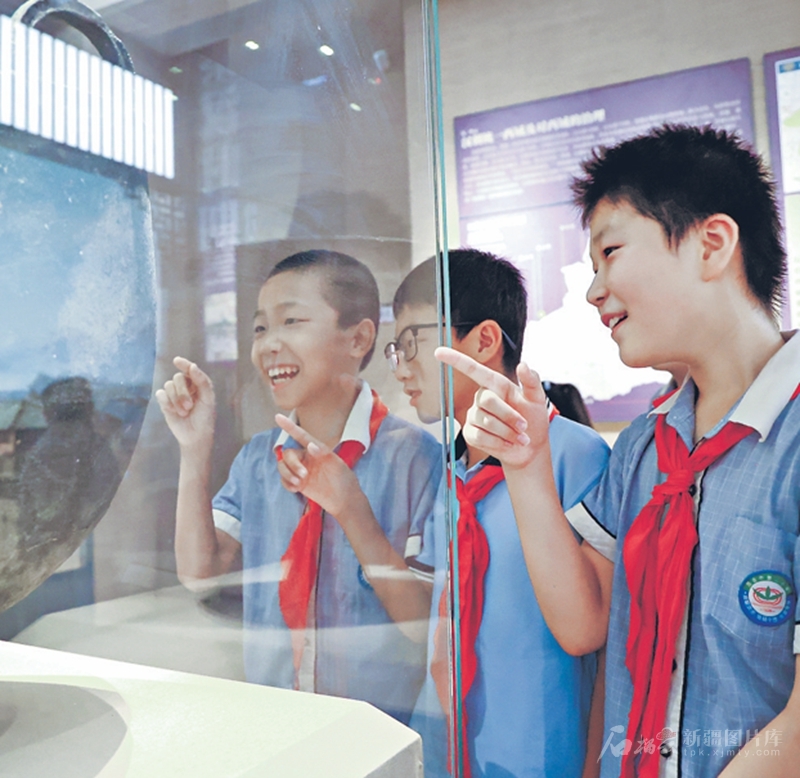 7月29日,昌吉市第二小学学生在昌吉回族自治州博物馆参观,感受历史文化魅力。 □梁宏涛摄