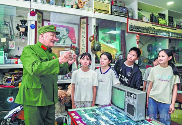 7月30日,孩子们在老兵家中聆听英雄故事。当日,乌苏市新市区街道文德路社区开展“传承‘八一’精神 赓续红色血脉”主题教育活动,邀请退役老兵为孩子们讲述英雄故事,传承红色基因。 □李仁锡摄 7月31日,各族群众在裕民县人民公园广场载歌载舞庆“八一”。连日来,当地通过开展丰富多彩的文艺活动,庆祝中国人民解放军建军98周年。 □杨化光摄