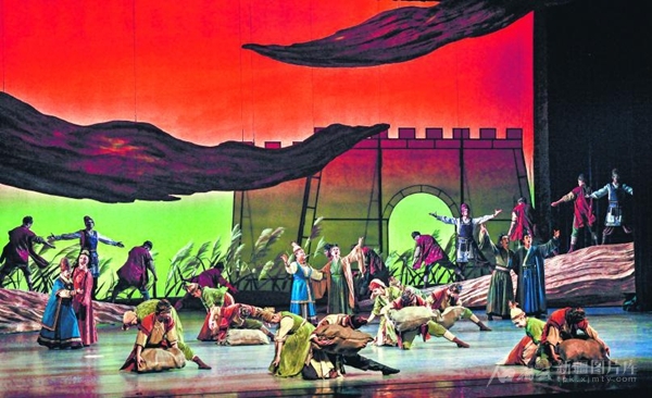 8月1日晚,《楼兰九歌》在新疆艺术剧院木卡姆艺术团剧场继续演出。