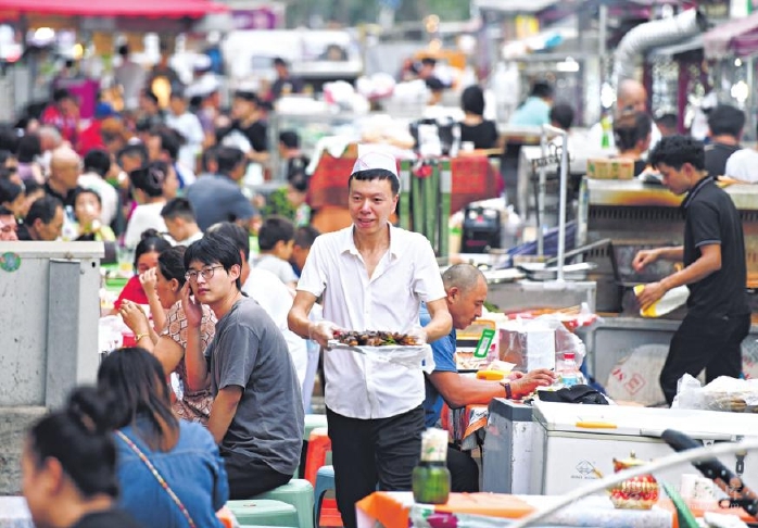 盛夏的夜晚,库尔勒市丝路街道37号便民市场夜市人流如织,人们尽情享受美食,体味城市夜晚的魅力。该便民市场100多个摊位日均接待量超1万人次,是库尔勒市背街小巷整治的民生成果之一。□石榴云/新疆日报记者王立华摄