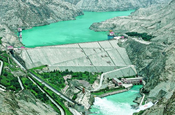 俯瞰乌鲁瓦提水利枢纽工程(8月6日摄)。 □石榴云/新疆日报记者邹懿摄
