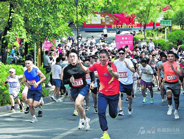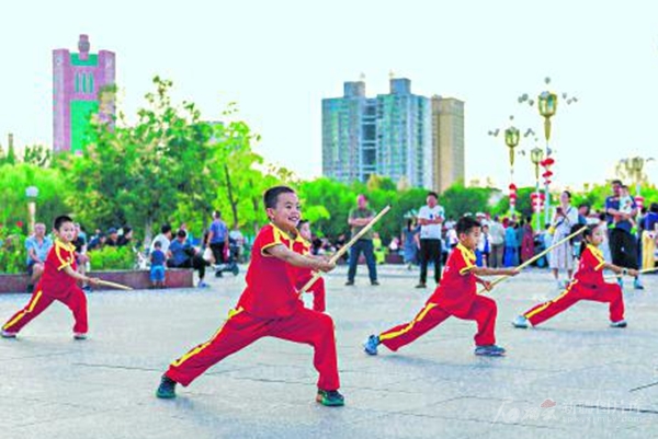 8月8日,参加比赛的市民冲出起点。当日,乌鲁木齐市沙依巴克区文化体育和旅游局(区文物局)在雅玛里克山旅游风景区举办“登雅山·享健康·悦生活”活动,吸引了近300名群众参与。 □石榴云/新疆日报记者韩亮摄 8月6日晚,青少年在乌鲁木齐市南湖市民广场练习棍术。□孙振嵩摄
