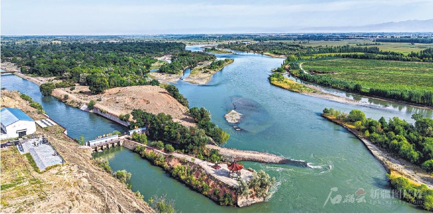 位于察布查尔锡伯自治县境内的察布查尔大渠老龙口(8月8日无人机摄)。这座始建于1802年的人工水利奇迹,经现代化改造后形成“渠首枢纽—干支渠—田间管网”三级灌溉体系,为30余万亩耕地提供稳定水源,被当地群众誉为“生命之渠”。 □石榴云/新疆日报记者周鹏摄
