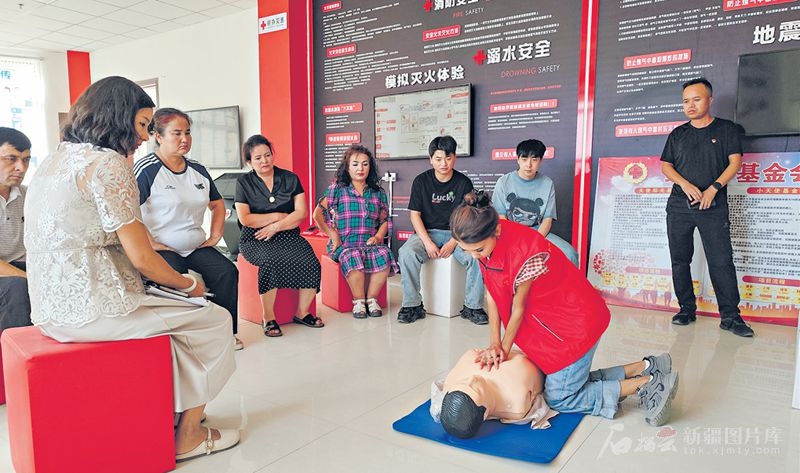 “遇到心脏骤停,要立即实施胸外心脏按压……”在新和县新和镇团结社区,应急救护培训每次都能吸引大量居民前来参与。