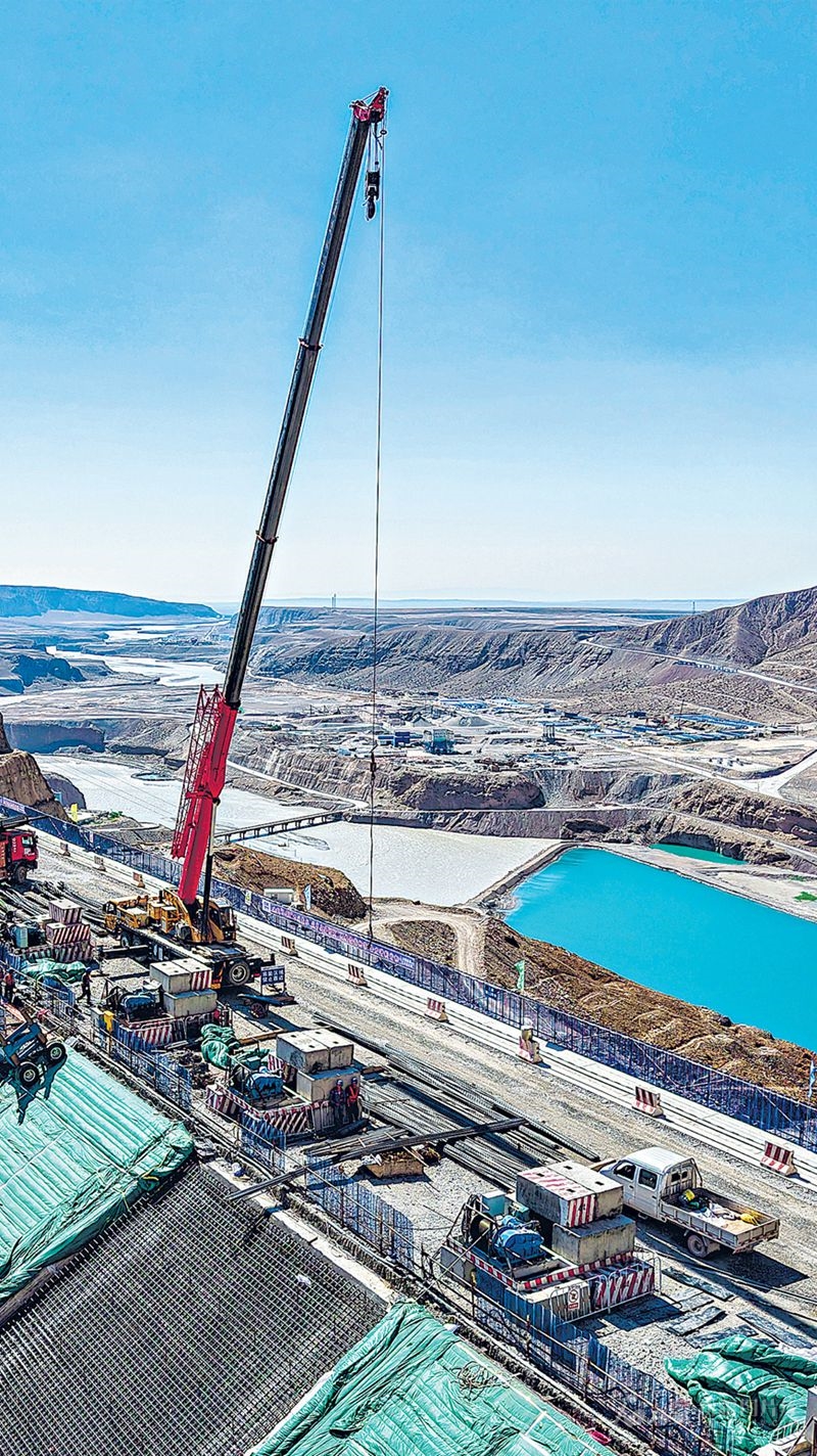 8月9日,工人在位于乌什县境内的大石峡水利枢纽工程建设现场作业。该工程将于2026年完工,届时每年将向塔里木河生态输水34.2亿立方米,改善塔里木河干流生态环境状况,有效缓解灌区农田春灌秋灌缺水问题。