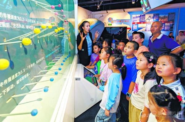 8月20日,孩子们在了解振动原理。当日,乌鲁木齐经济技术开发区(头屯河区)嵩山街街道庐山街社区组织辖区孩子到新疆科技馆参观,体验科普项目,感受科技的神奇与魅力。 □孙振嵩摄