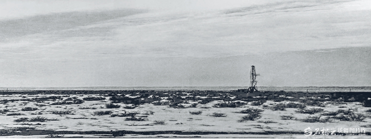 1955年7月6日,在黑油山一个小土丘上,克拉玛依一号井开钻。独山子矿务局1219青年钻井队在钻台前立下铮铮誓言:“安下心、扎下根,不出油、不死心!”