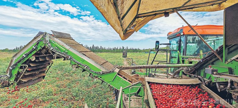 8月下旬,乌鲁木齐高新技术产业开发区(新市区)安宁渠镇番茄进入采收期,农户抢抓农时,积极组织农机和人力投入采收工作。□石榴云/新疆日报记者 邹懿摄