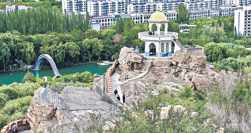 8月23日,游客在乌什县燕泉山景区游玩。 该景区风景秀丽,近年来通过不断完善基础设施,增加游玩项目,吸引众多游客前来。□艾则孜·沙木沙克摄