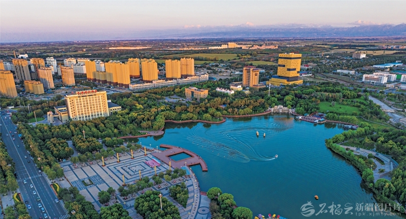 8月27日,夕阳下的奇台县靖宁文化主题公园景色怡人。近年来,奇台县着力打造和谐生态宜居城市,不断提高园林绿化水平,县城建成区绿地面积719.45公顷,人均公园绿地面积达23.26平方米,远超全国平均水平。□何龙摄