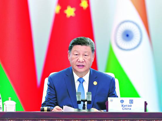 习近平强调,上海合作组织在成立宣言和组织宪章中开宗明义指出,要推动国际政治经济秩序朝着更加民主、公正、合理的方向发展。24年来,组织秉持互信、互利、平等、协商、尊重多样文明、谋求共同发展的“上海精神”,坚持地区事务共商、平台机制共建、合作成果共享,提出并实施许多全球治理新理念,日益成为全球治理体系建设和改革的积极推动力量。面对加速演进的世界百年未有之大变局,上海合作组织要发挥引领作用,为维护世界和平稳定贡献“上合力量”,为推动全球开放合作展现“上合担当”,为弘扬全人类共同价值作出“上合示范”,为捍卫国际公平正义采取“上合行动”,当好践行全球治理倡议的表率。