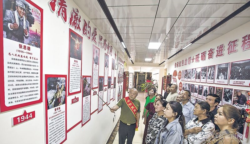9月1日,市民在库车市爱国拥军促进会的军旅展厅参观,聆听讲解员讲述英烈事迹。 □袁欢欢摄