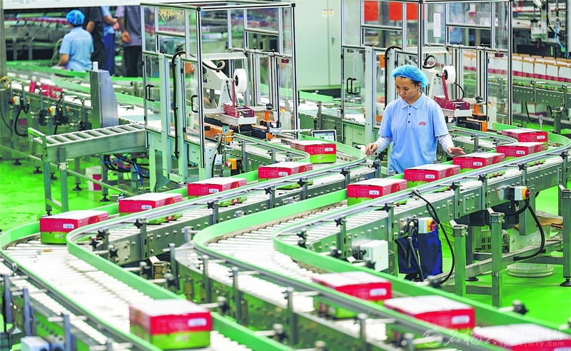 9月5日,工人在新疆新茄食品有限责任公司番茄制品包装车间作业。眼下正值番茄生产加工黄金期,该公司年产20万吨番茄制品的11条生产线全部投入运行,日处理番茄1万吨。 □何龙摄