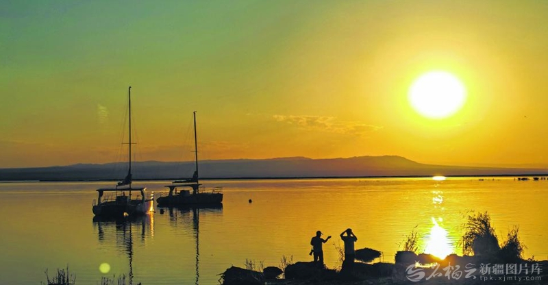 9月8日,游客在乌伦古湖海上魔鬼城景区欣赏落日夕照。秋高气爽时节,该景区既有海滨辽阔景致,又蕴含峡谷神韵,成为游客的热门打卡地。 □石榴云/新疆日报记者秦梅花摄