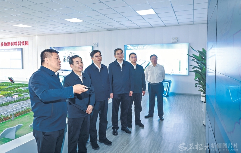 9月9日至10日,自治区党委书记、兵团党委第一书记、第一政委陈小江在塔城地区和兵团第九师白杨市调研。这是9月9日陈小江在新疆塔额兵地新材料科技园,听取园区新能源项目规划和重点项目推进情况介绍。