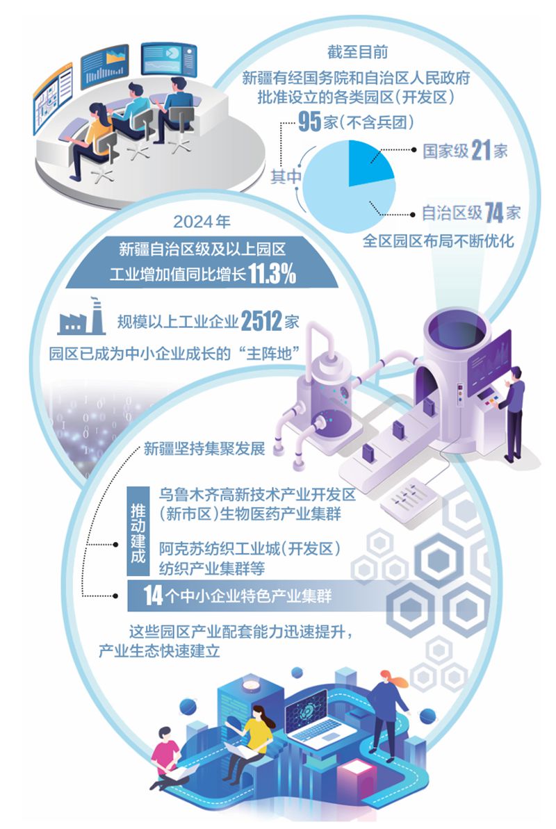 龙头企业“领跑”、中小企业“跟跑”、创新平台“助跑”……新疆园区(开发区)与中小企业聚力共生,实现了园区“筑巢”、产业“抱团”、企业“蝶变”,正书写着新型工业化发展的生动篇章。