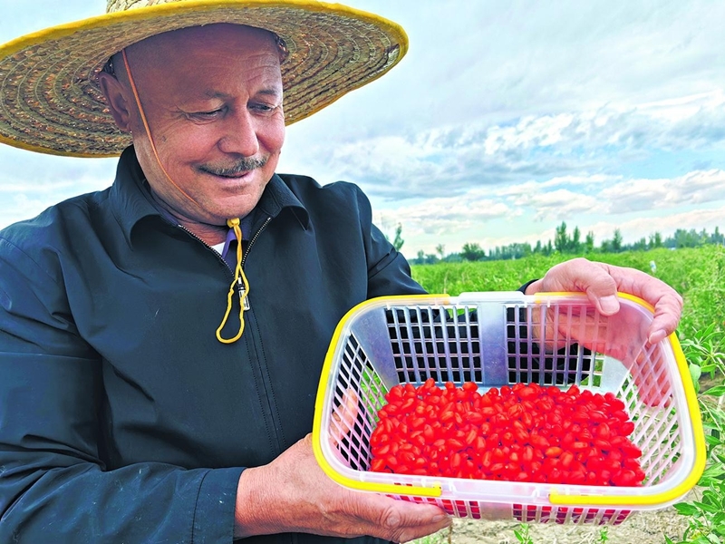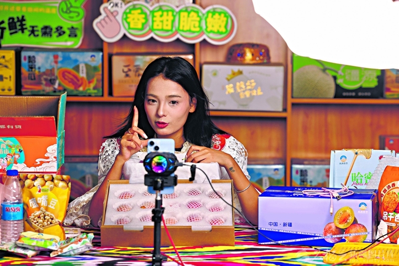 9月11日,精河县托里镇吾夏克巴依西村种植户展示刚采摘的枸杞鲜果。□石榴云/新疆日报记者李雄心摄 9月11日,农民在阿克苏地区丰庆园果品农民专业合作社的一处苹果园察看苹果长势。□石榴云/新疆日报记者周鹏摄 9月10日,电商主播在吐鲁番市高昌区亚尔镇新城片区新城西门村直播销售农特产品。□石榴云/新疆日报记者李瑞摄