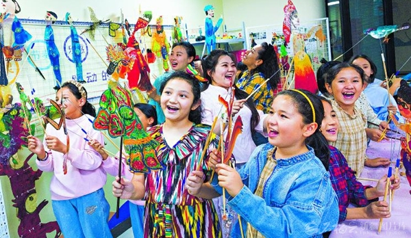 9月15日,孩子们在体验皮影戏。当日,乌鲁木齐市天山区胜利路街道羊毛湖社区组织开展了皮影戏体验活动。孩子们通过现场体验,不仅深入了解了皮影艺术,也让中华优秀传统文化在心中扎下了根。 □孙振嵩摄
