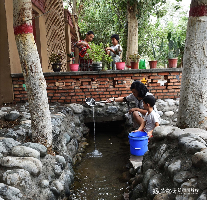 吐鲁番市高昌区葡萄镇布拉克村村民在坎儿井取水(2022年6月25日摄)。近年来,该市将坎儿井保护与修复同乡村振兴相衔接,让坎儿井水源源不断润泽乡村。□刘健摄