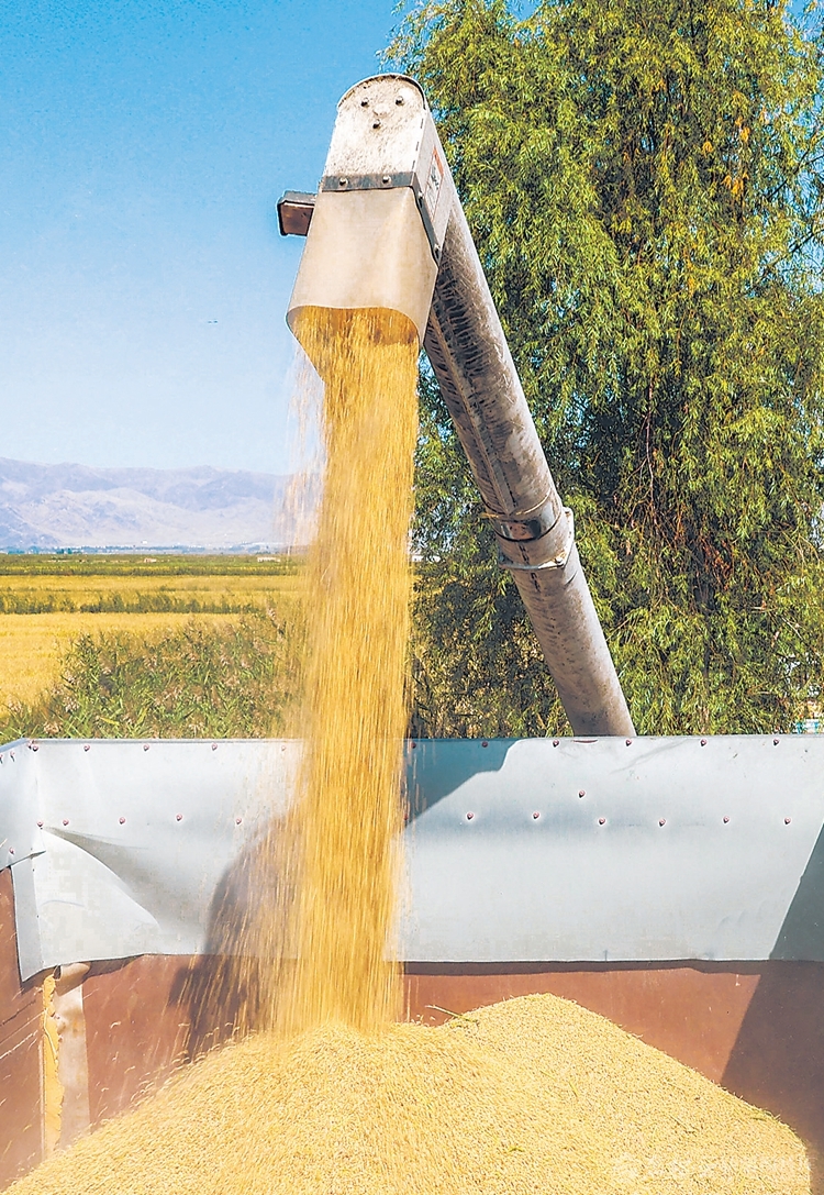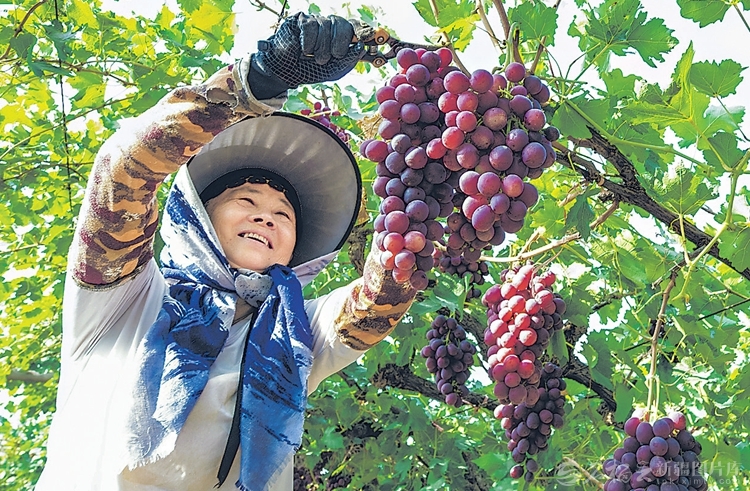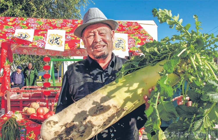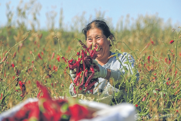 9月22日,收割机在新源县肖尔布拉克镇喀克村水稻田里作业。 □张文庭摄 9月17日,博湖县塔温觉肯乡村民在收获辣椒。 □胡侍琦摄 近日,昌吉市种植户在采摘葡萄。□何龙摄 9月22日,裕民县吉也克镇农民在农产品展销活动现场展示自家种植的特大青萝卜。□杨化光摄