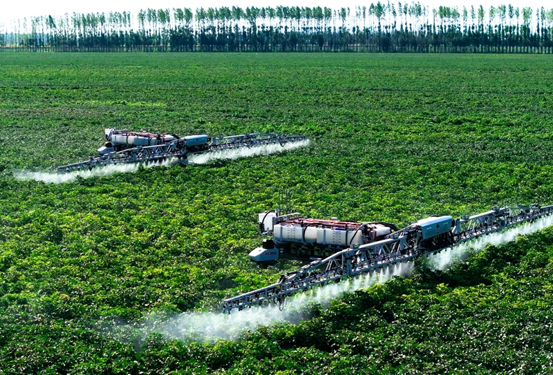 如今,大马力机车、采棉机、北斗导航、无人机等高新科技已广泛应用于农业生产,主要农作物耕种收综合机械化率达96.5%。