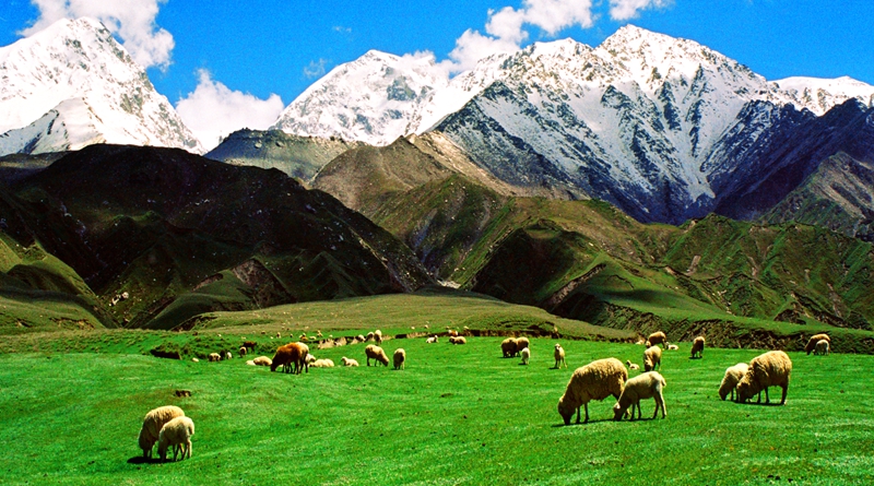 8月,昆仑山大峡谷迎来最美季节。巍峨雪山耸入云霄,无垠草原绿意盎然,成群牛羊与飞鸟穿梭其间,与蓝天、白云共同勾勒出一幅色彩浓郁、生机盎然的昆仑画卷。