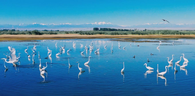 疣鼻天鹅对栖息环境要求极高,堪称生态“环评师”。2024年,在玛纳斯国家湿地公园越冬的疣鼻天鹅数量突破1000只,更有两只连续3年停留,5月成功诞下6只幼鸟,这是玛纳斯县持续推进生态环境保护的结果。