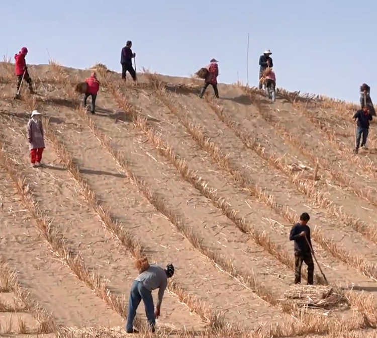 动员群众积极参与,实现治沙与致富协调发展。民丰县治沙以富民为根本,发动群众参与,通过划地到村、确权到户,让群众在治沙中增地、增加生产资料。全县群众参与治沙累计7.95万亩,农牧民人均增加农业用地2.8亩。参与芦苇收割工作的群众,人均年增收超7000元,印证了“治沙为民、治沙惠民”的重要性。