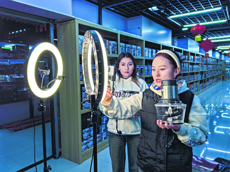 在商品琳琅满目的中哈霍尔果斯国际边境合作中心义乌国际商贸城里,线上客户“云逛街”是当下最流行的事。这里几乎每天都有一群国际主播准时上岗,通过俄语、英语等语种直播,在海外社交平台推介中国好物。