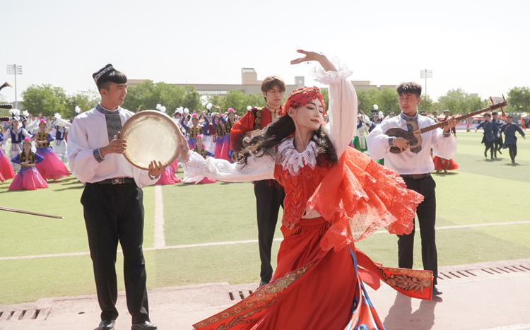 “人人会跳新疆舞、人人会打太极拳、师范生人人会写毛笔字、人人会唱5首以上爱国主义歌曲、人人会讲5个历史英雄人物故事、先进人物故事”——这是喀什大学创新开展的“五个人人”活动,已成为学校落实立德树人根本任务的特色品牌。学校以“五个人人”活动为载体,引导各族学生在文化浸润中铸牢中华民族共同体意识。