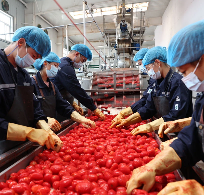 ——粮油食品板块,坚决扛牢保障国家粮食安全重任。新疆农牧投集团围绕重塑新疆粮油集团有限责任公司目标任务,团结带领全体干部员工在逆境中寻求突破与转型,计划投入约20亿元新建乌鲁木齐粮油产业园项目,预计2028年建成投产;旗下新疆华麦新粮面粉有限责任公司积极进军疆外市场,成功在东三省、京津冀等30个省区市打开销路,实现疆面出疆,疆外年销售占比高达60%。特色农产品番茄制品首次走出国门直达欧洲,投资3.58亿元的年产5.2万吨番茄制品项目已开工建设。