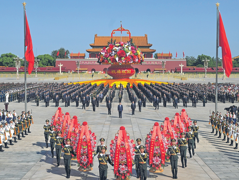 9月30日上午,党和国家领导人习近平、李强、赵乐际、王沪宁、蔡奇、丁薛祥、李希、韩正等来到北京天安门广场,出席烈士纪念日向人民英雄敬献花篮仪式。□新华社记者谢环驰摄
