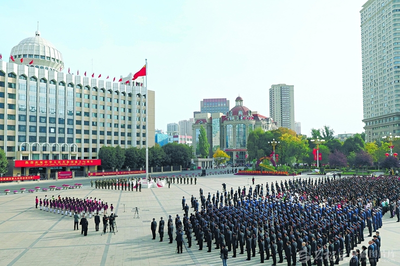 新中国76年来,党领导人民自力更生、接续奋斗,取得彪炳史册的辉煌成就。今年国庆节恰逢自治区成立70周年。70年来,在党中央坚强领导下,新疆面貌发生了翻天覆地的巨大变化。进入新时代,以习近平同志为核心的党中央引领新疆各项事业取得历史性成就、发生历史性变革,各族人民像石榴籽一样紧紧抱在一起、昂首阔步走在中国式现代化道路上。参加仪式的各族干部群众表示,新的历史起点上,将深入学习贯彻习近平总书记听取自治区党委和政府工作汇报时的重要讲话精神和对自治区成立70周年的重要题词精神,完整准确全面贯彻新时代党的治疆方略,聚焦社会稳定和长治久安总目标,进一步铸牢中华民族共同体意识、推进中华民族共同体建设,团结一心,感恩奋进,为建设团结和谐、繁荣富裕、文明进步、安居乐业、生态良好的社会主义现代化新疆贡献更大力量。