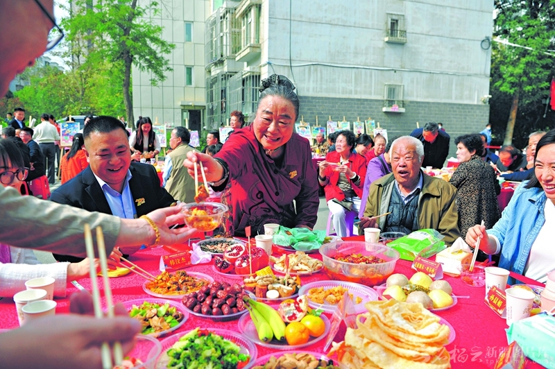 10月1日上午,乌鲁木齐市水磨沟区南湖南路街道办事处举办“邻里同尝百家宴,齐心共贺七十年”为主题的金石榴邻里节活动,大家在欢声笑语中为自治区成立70周年献上美好祝愿。 □石榴云/新疆日报记者秦梅花摄