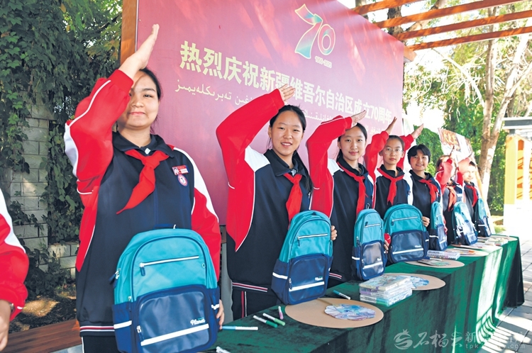 9月25日,博乐市乌图布拉格镇介格得布拉格村村民巴·巴登其其格(中)一家收到了中央代表团赠送的慰问品。□石榴云/新疆日报记者周鹏摄 9月25日,昌吉市第七中学学生收到中央代表团赠送的慰问品。□石榴云/新疆日报记者汤永摄