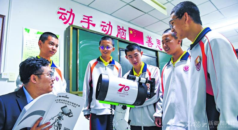 9月26日,伊宁市第二十三中学的几名中学生在老师的指导下组装中央代表团赠送的天文望远镜。 □石榴云/新疆日报记者周鹏摄