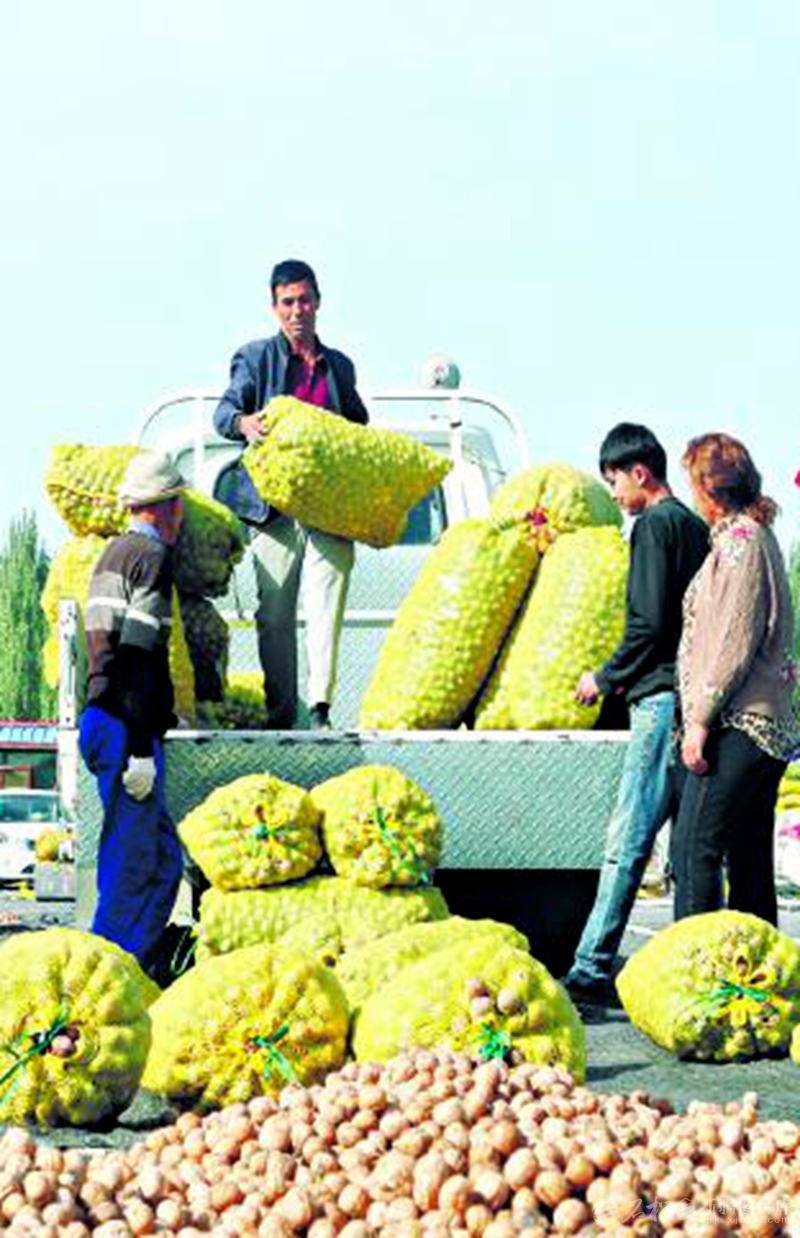 采收机在兵团第二师22团一处高标准农田里来回穿梭,进行辣椒收获作业(9月27日无人机摄)。金秋时节,农田里到处是一派繁忙的秋收景象。□谢江林摄 9月26日,核桃商在库车市乌恰镇甬库振兴村农副产品批发市场装运购买的核桃。近年来,该镇持续打造农特产品种植、加工、销售全产业链,助力乡村振兴。 □吐尔松·托胡提摄 9月23日,游客在采摘葡萄。当日,新和县依其艾日克镇葡萄园丰收节采摘活动启动,吸引了不少游客前来体验采摘。 □魏浩东摄