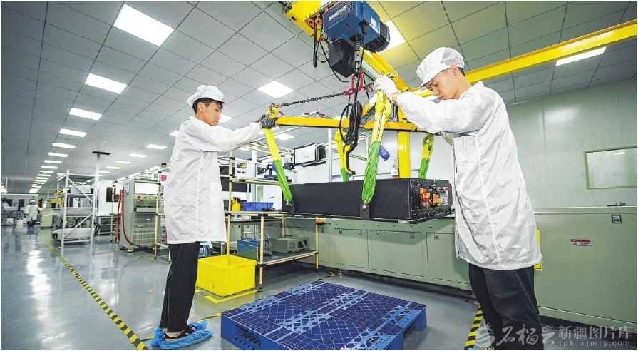 10月16日,在位于昌吉国家高新技术产业开发区的易事特储能科技(新疆)有限公司生产车间,工人将装配好的储能电池下线。该企业自6月试生产以来订单不断,生产线满负荷运转,到目前已实现产值近亿元。 □何龙摄
