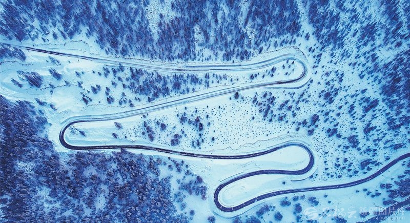 阿禾公路沿途克兰河大峡谷美景(10月14日摄)。金秋十月,克兰河大峡谷层林浸染,斑斓秋色与皑皑白雪交相辉映,独特的自然之美让阿禾公路成为许多自驾游客的首选目的地。 □阿尔达克·拜斯汗摄