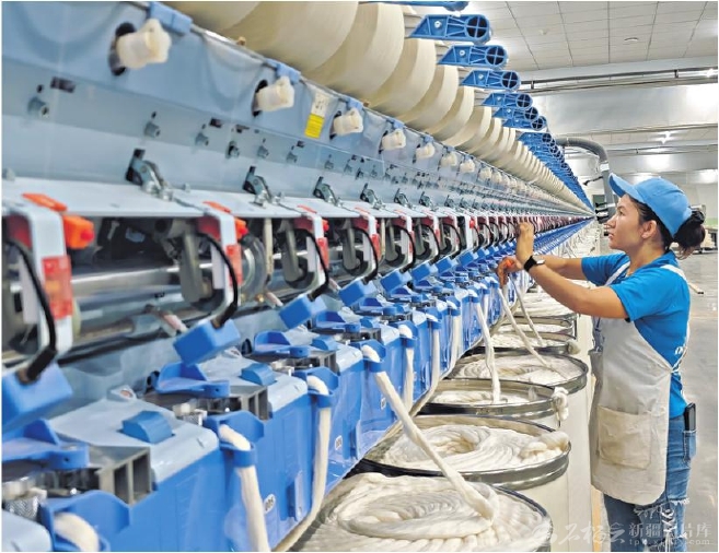 10月17日,工人在位于阿瓦提县的新疆精一纺织科技有限责任公司纺织车间作业。该公司产品主要销往浙江、广东等地。近年来,阿瓦提县聚焦技术创新与设备更新,推动纺织产业向高端化、绿色化迈进。 □包良廷摄
