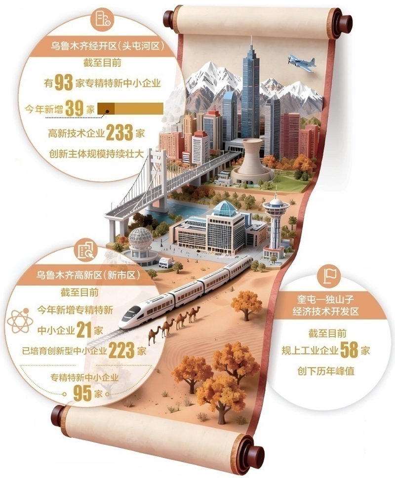 创新驱动发展是持续进步的关键支撑。乌鲁木齐经济技术开发区(头屯河区)、乌鲁木齐高新技术产业开发区(新市区)新增专精特新中小企业达60家。这些创新型企业在细分领域突破技术瓶颈,推动产业向高端化转型,让园区成为新质生产力孕育的重要载体。
