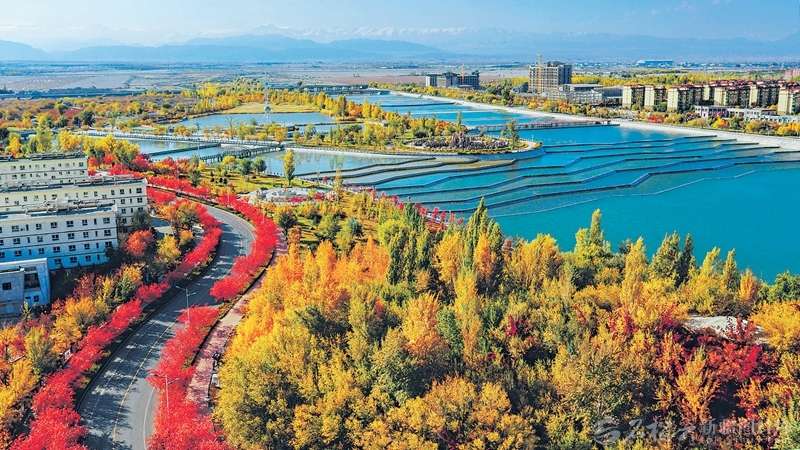 深秋时节,精河县城河水清清、层林尽染,犹如一幅色彩绚烂的油画。近年来,该县通过实施河道生态系统修复、构建生态绿廊等措施,建设“生态优美、绿色低碳、宜居宜游”的生态城市。□孙明亮摄